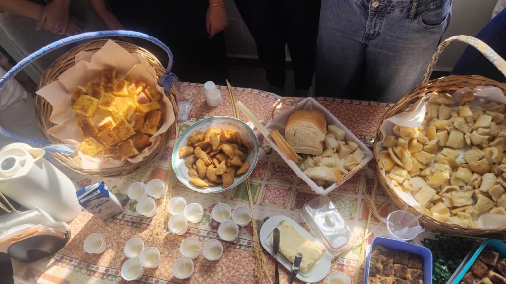 “Fiz a broa de milho, que me lembra muito a minha infância… fazer desde o zero com a minha avó, aquela receita quentinha… um café da manhã das minhas raízes.”